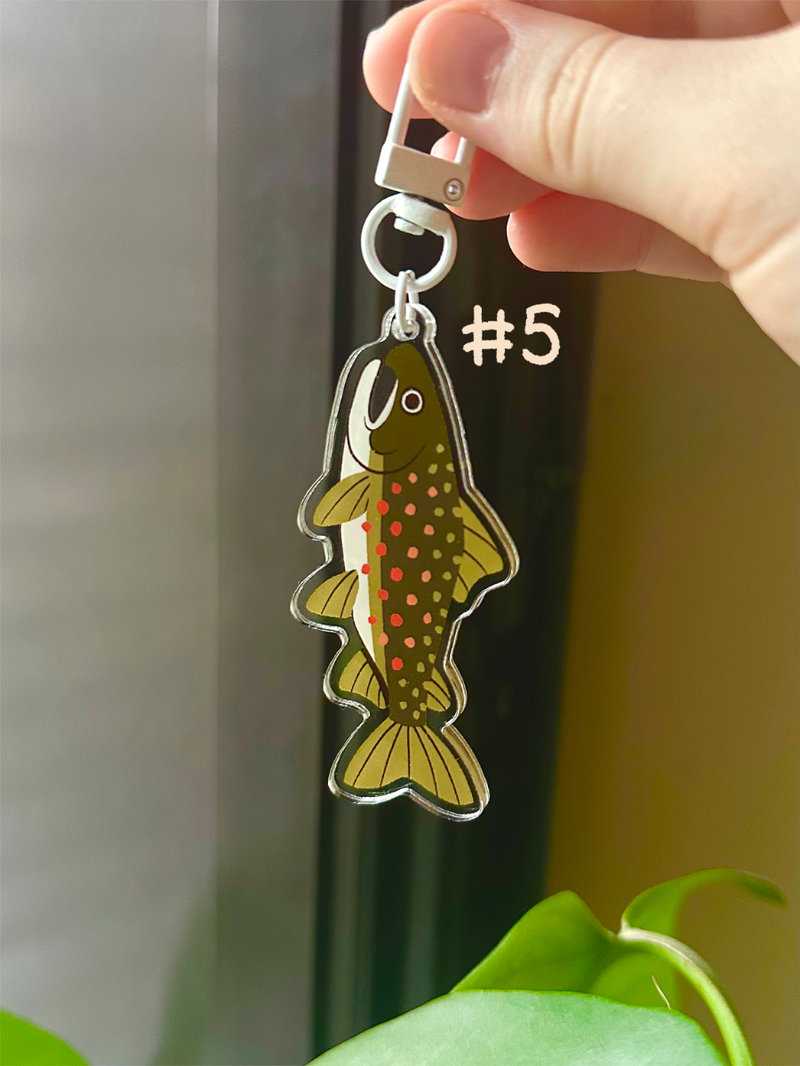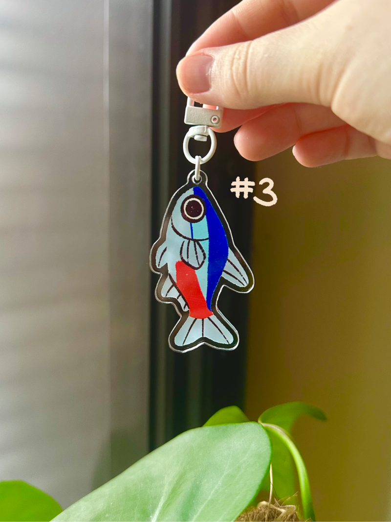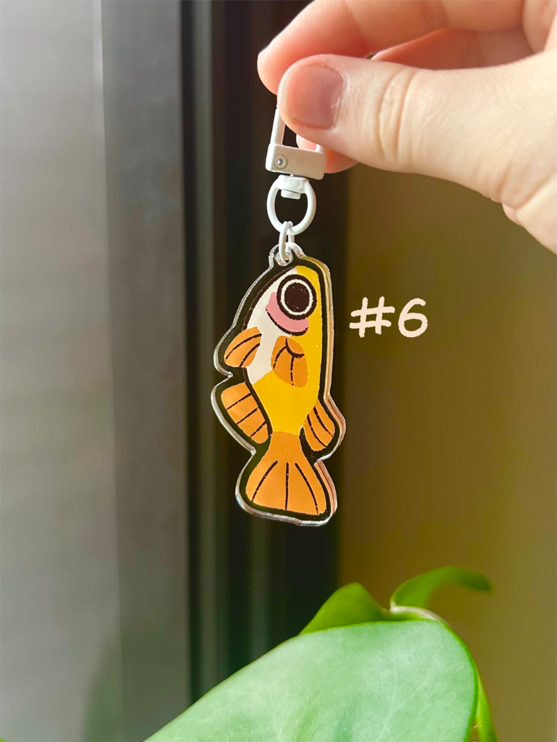 Acrylic keychains of the fish that feature on my Animal Crossing fish poster!