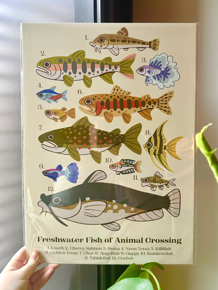 An illustration that appreciates some of the fishies from Animal Crossing!